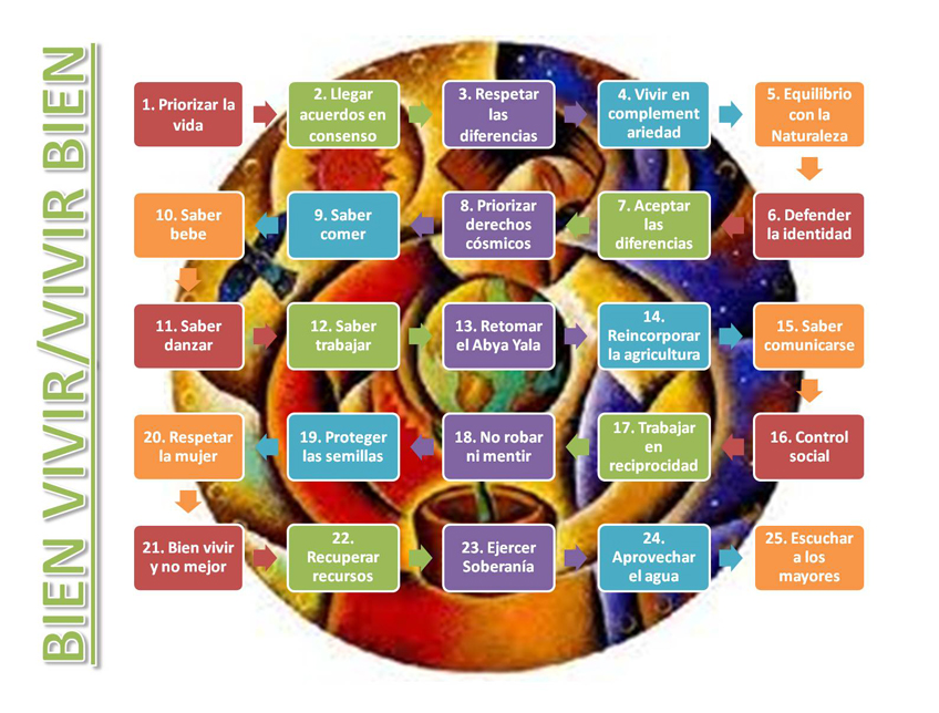 Las Constituciones de Bolivia y Ecuador recogen el concepto del Buen Vivir que es planteado también por las mujeres de las comunidades indígenas de Argentina. Se trata de vivir en armonía con la naturaleza, sin devastarla; promover la soberanía alimentaria; y la diversidad.
