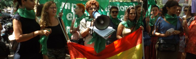 La Campaña Nacional por el Derecho al Aborto Legal, Seguro y Gratuito de Argentina se manifestó el pasado 30 de enero frente a la Embajada de España en Buenos Aires en apoyo a las manifestaciones realizadas en España solicitando al gobierno del Partido Popular que de marcha atrás con un proyecto de ley que limitaría enormemente el derecho al aborto del que disponen actualmente las mujeres en ese país. En Neuquén también lo hizo la Colectiva Feminista La Revuelta.