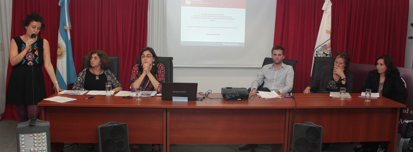 El Observatorio de Género del Poder Judicial de la Ciudad de Buenos Aires, dirigido por Diana Maffia, presentó los resultados de la segunda parte de la encuesta “Percepciones de Desigualdad de Género en el Poder Judicial”. La misma aporta una mirada sobre los procesos de selección de personal y el clima laboral en la Justicia de la ciudad. Las conclusiones hablan de una mayor mirada crítica por parte de las mujeres hacia los procesos de selección de personal y una mayor percepción de la discriminación de género. Se sugiere el aumento de las capacitaciones en género, particularmente para los varones.